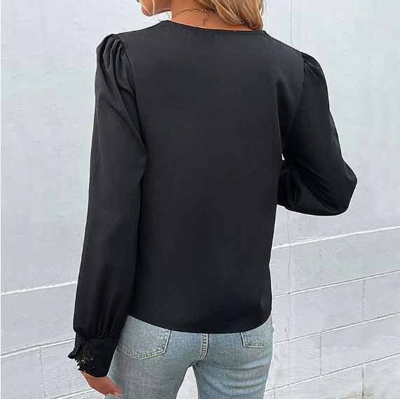 Autumn Women Clothing Long Sleeved Lace Black Shirt Women Top