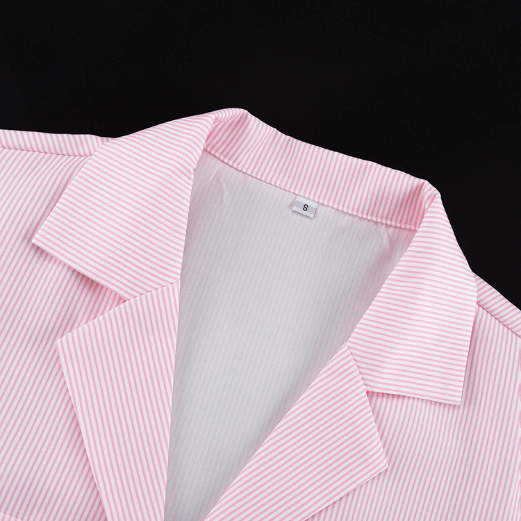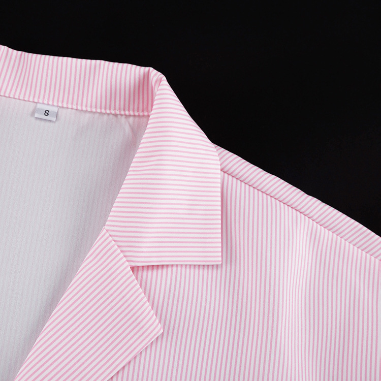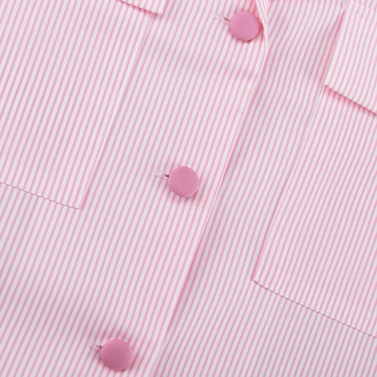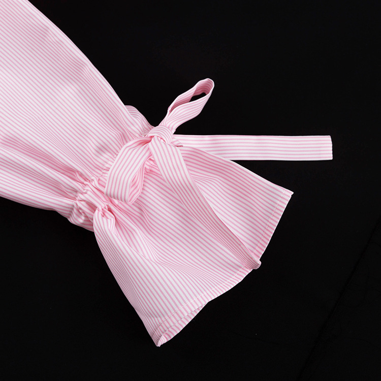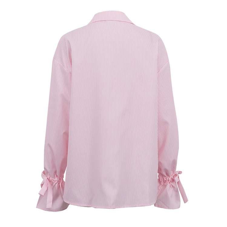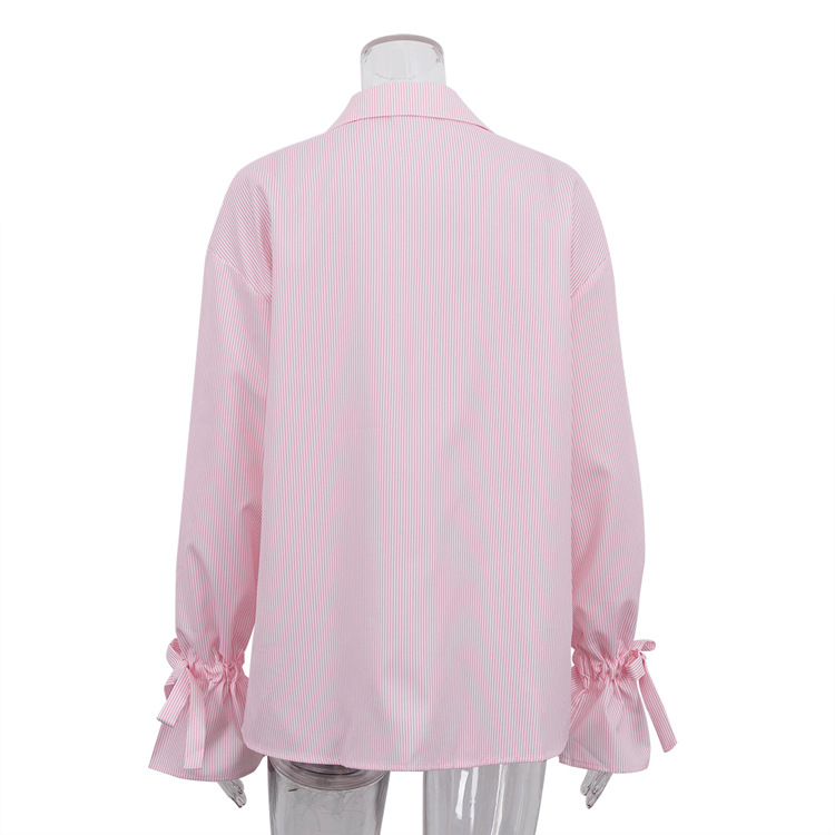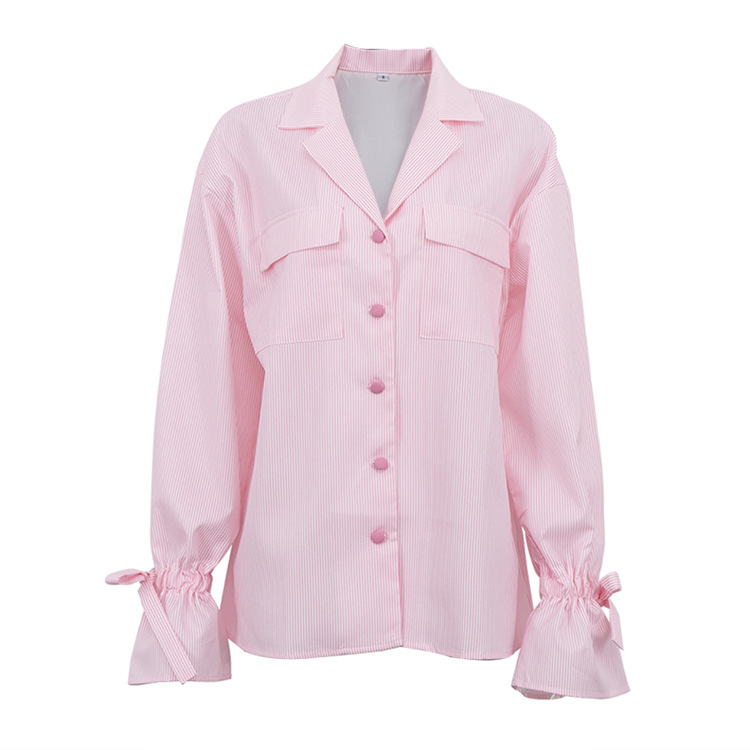 Fashionable Striped Office French Shirt for Women Spring Autumn Printing Collared Bell Sleeve Loose Pockets Shirt