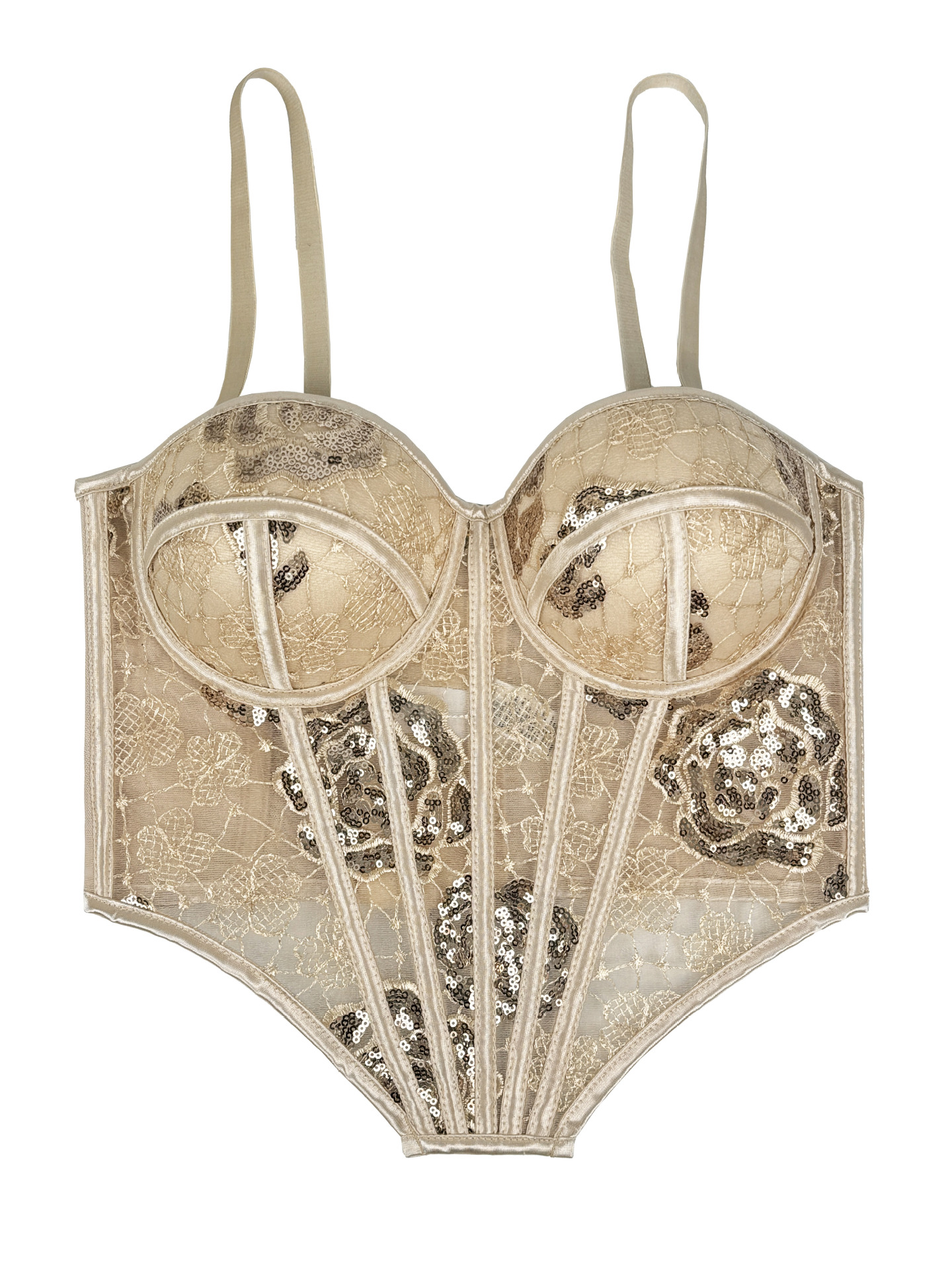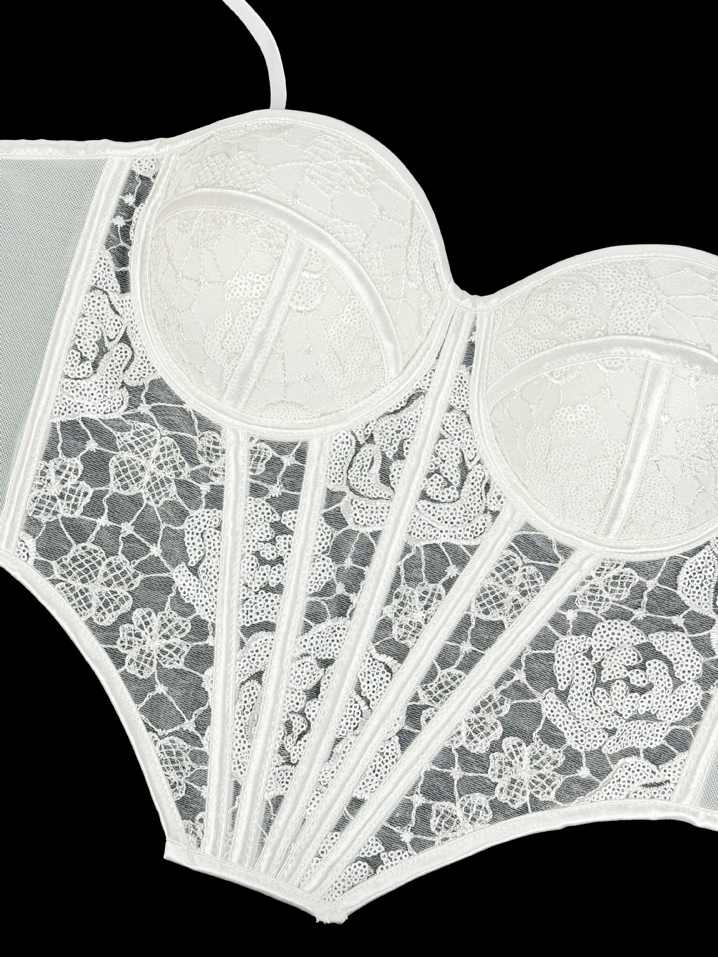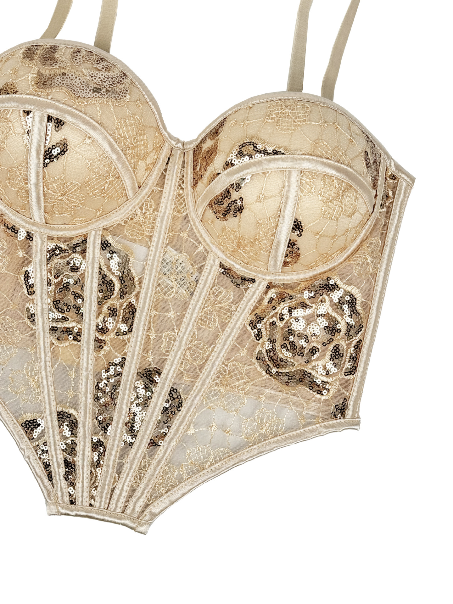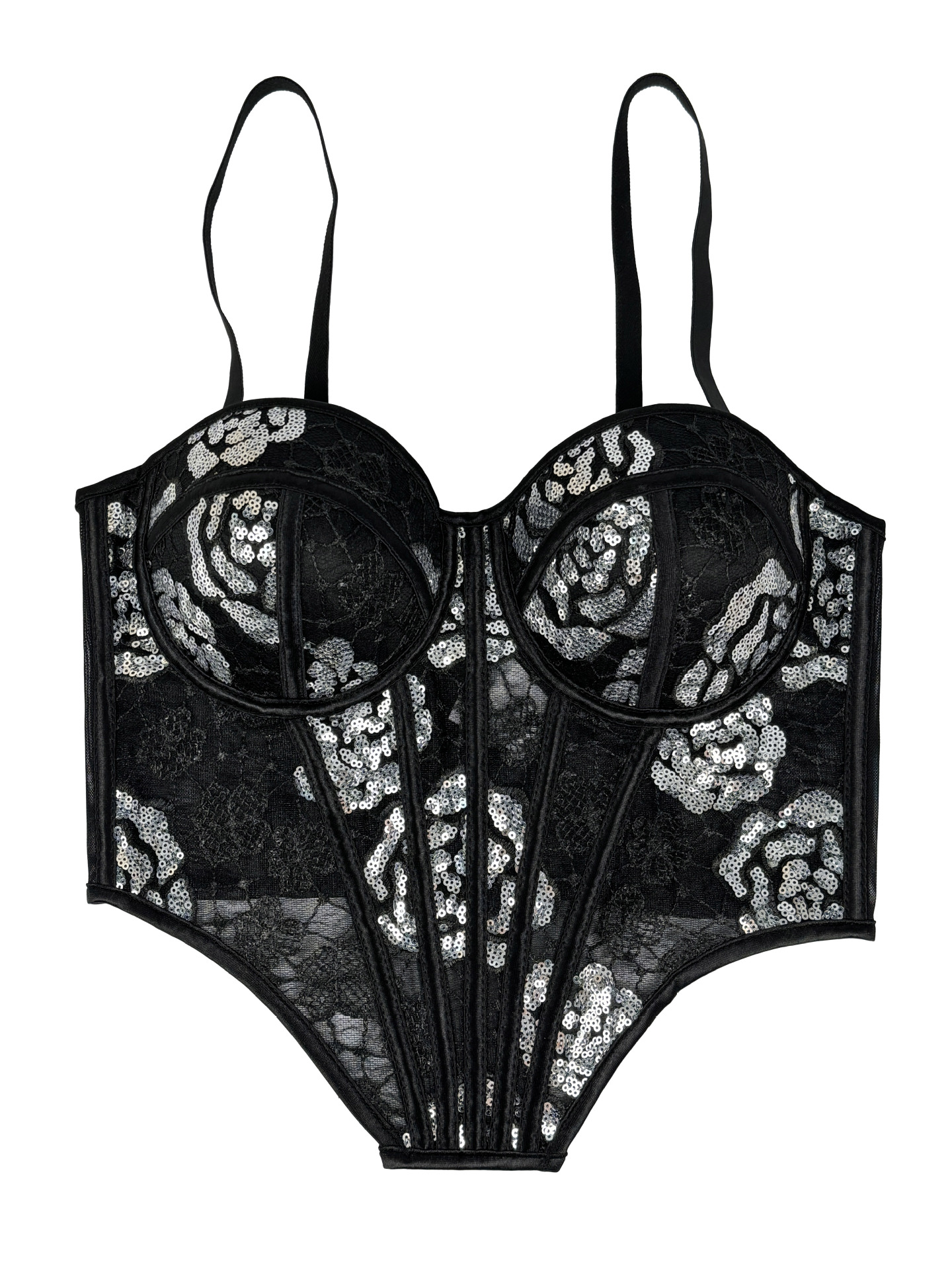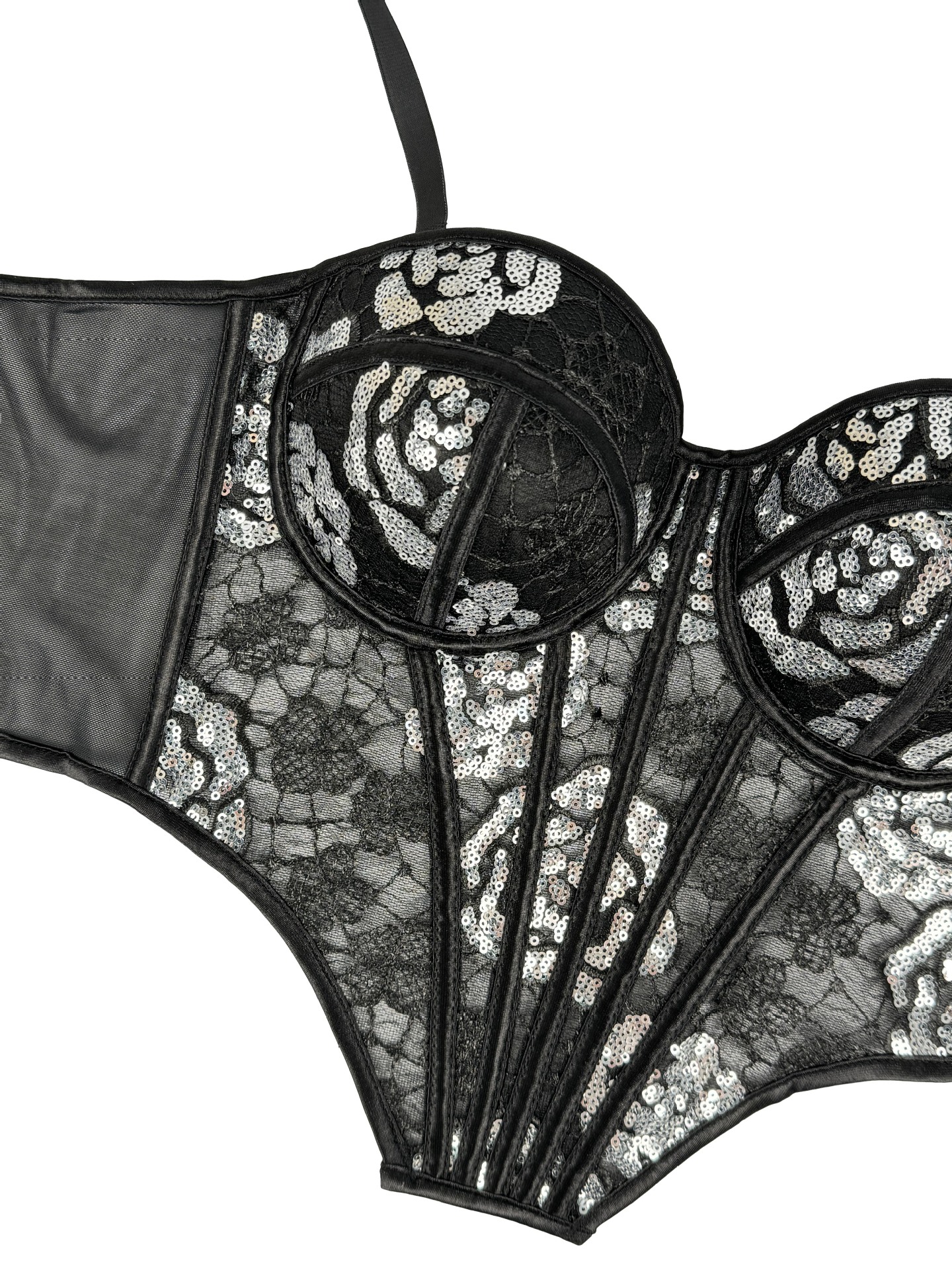 Element: Sequin,Boning,Lace/Tulle/Fishnet,hook closure