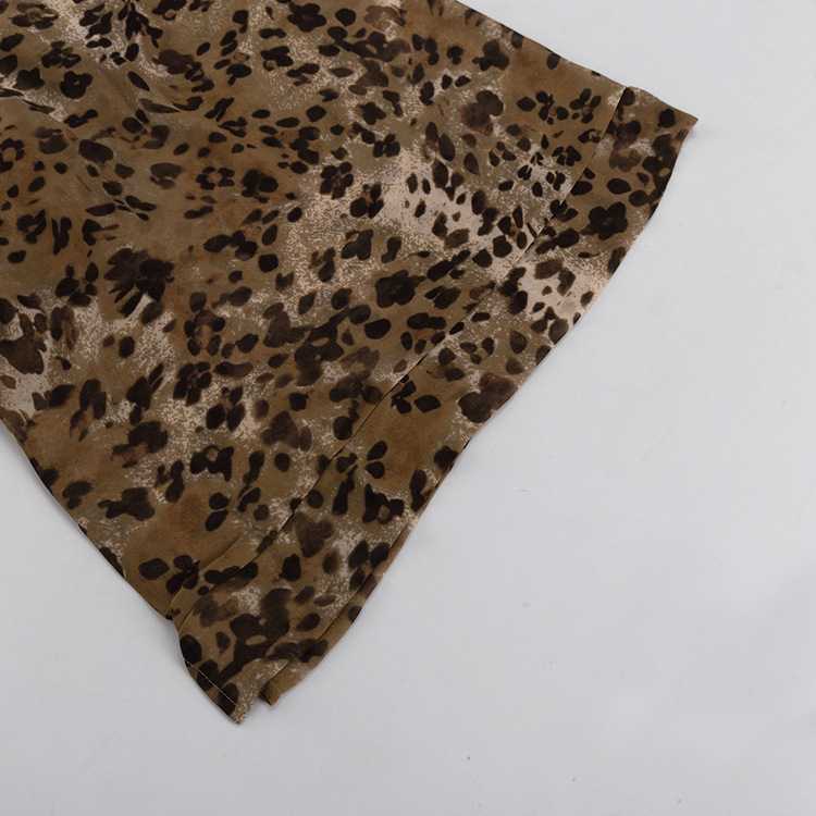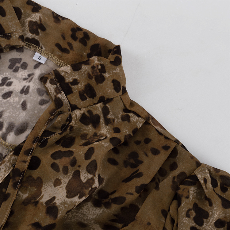 Spring Women Shirt Leopard Print Design Hollow Out Cutout out Stand up Collar Long Sleeved Top