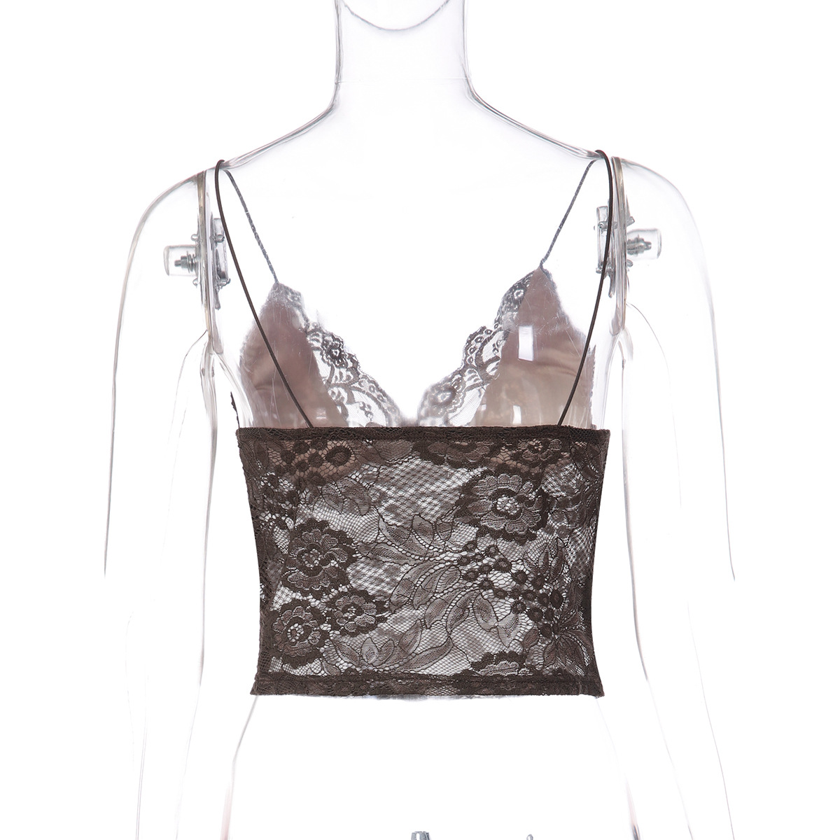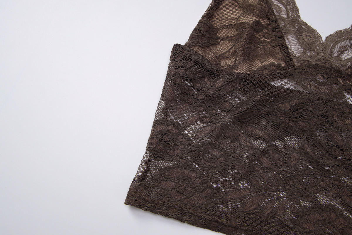 Women Clothing Sexy See through Lace Lace Spaghetti Strap Bandeau Slim Fit Deep V Plunge Vest