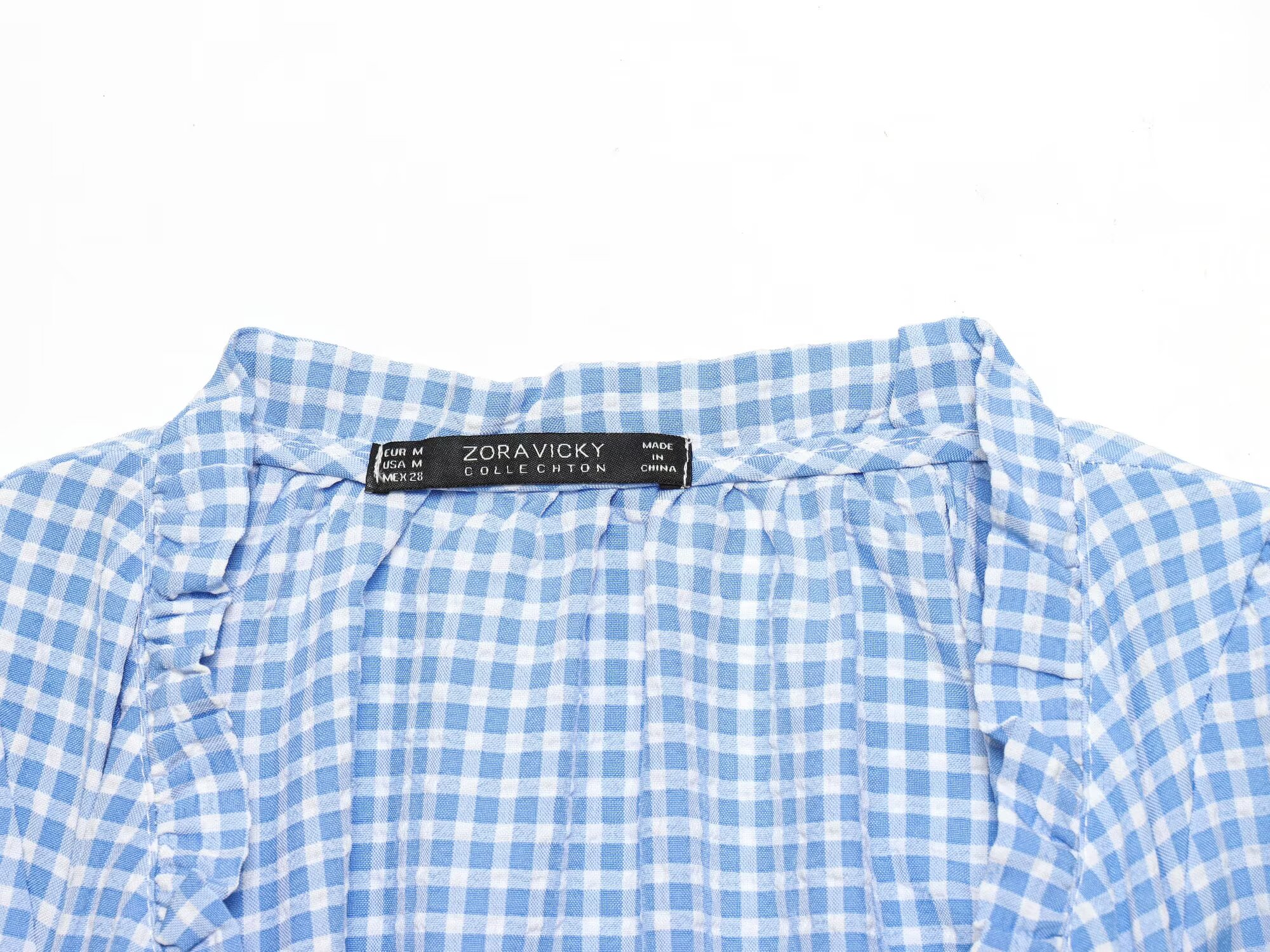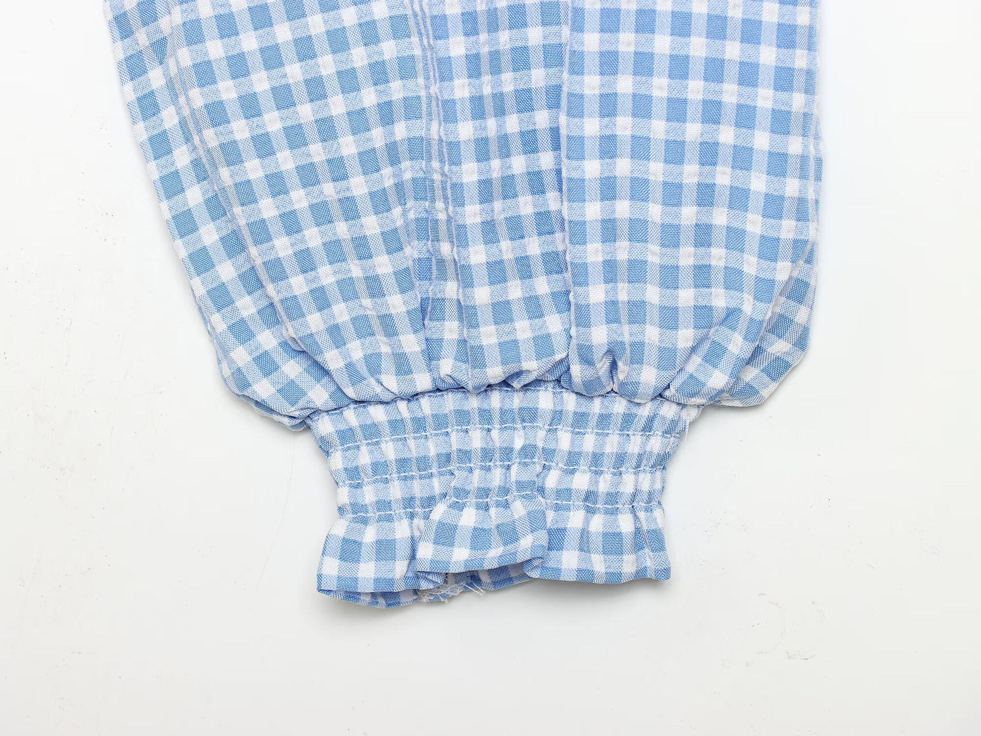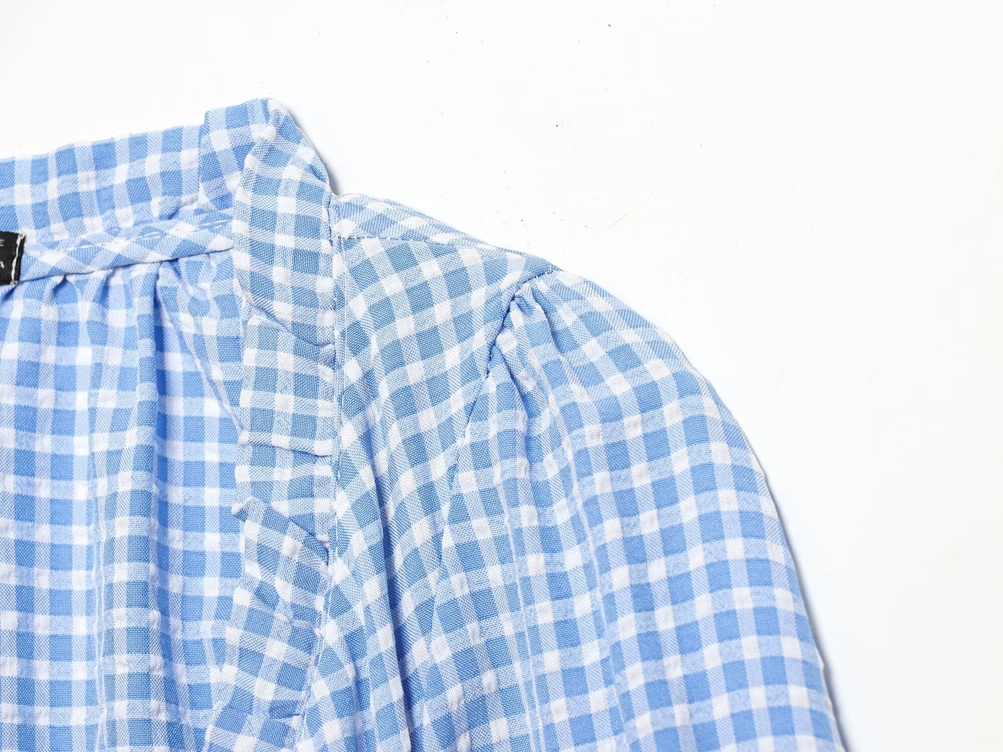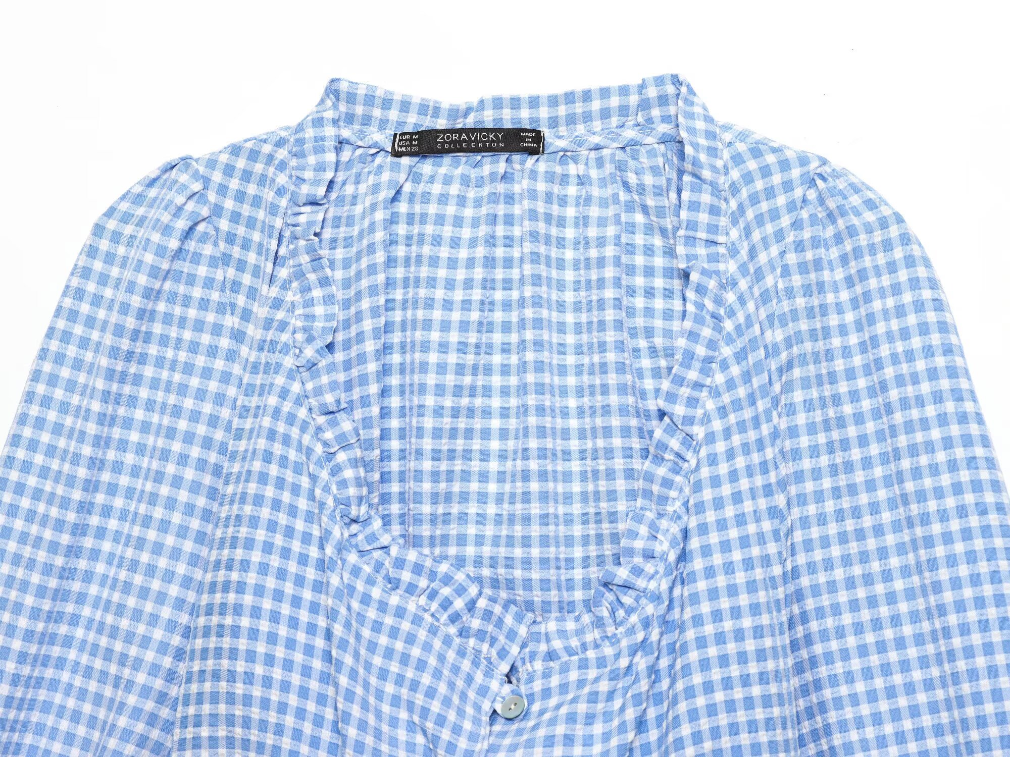 Women Clothing Spring Sexy Square Collar Blue Plaid Short Long Sleeve Top