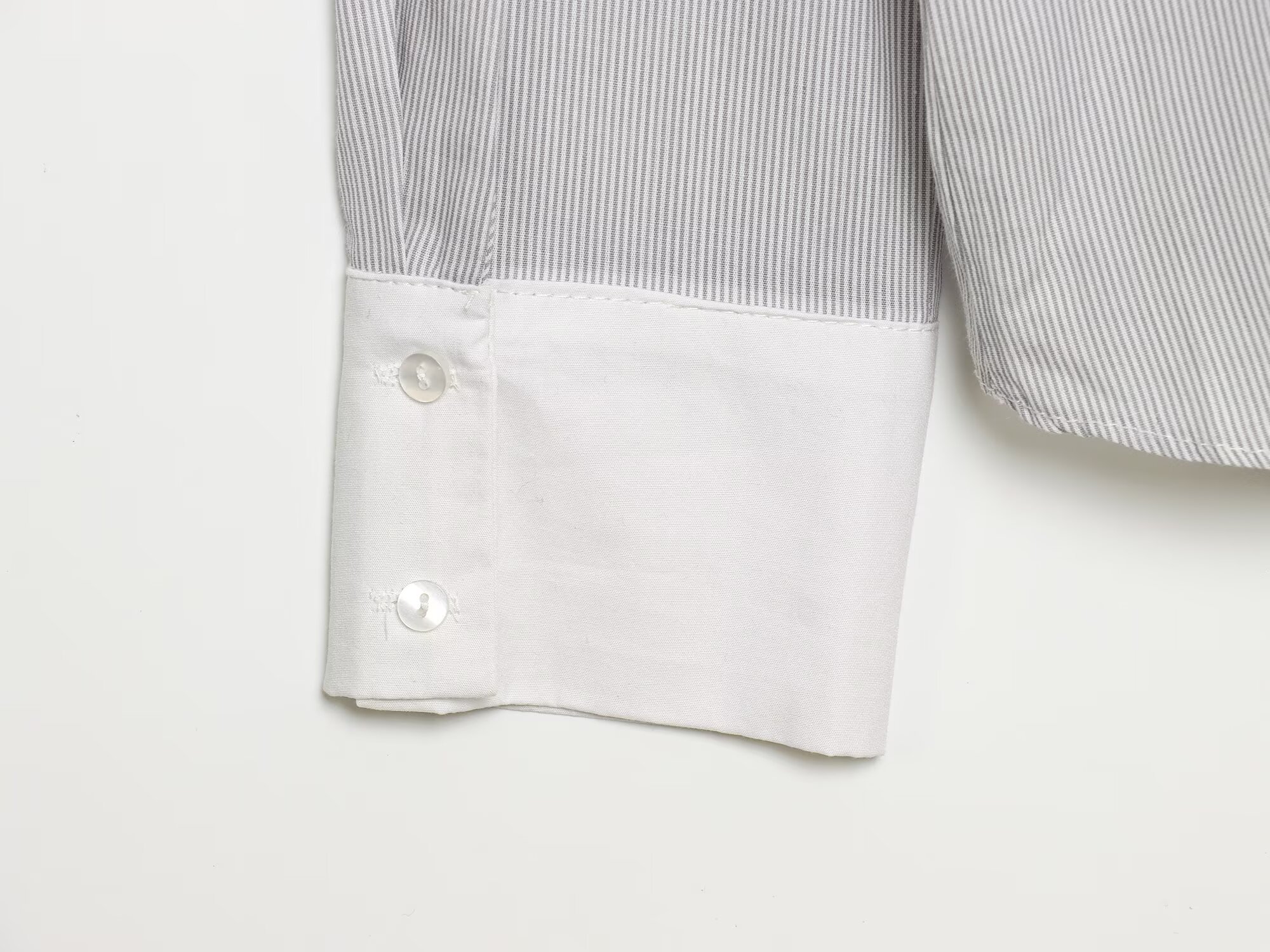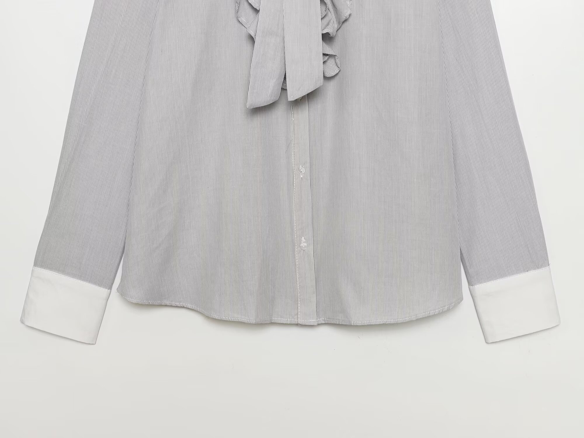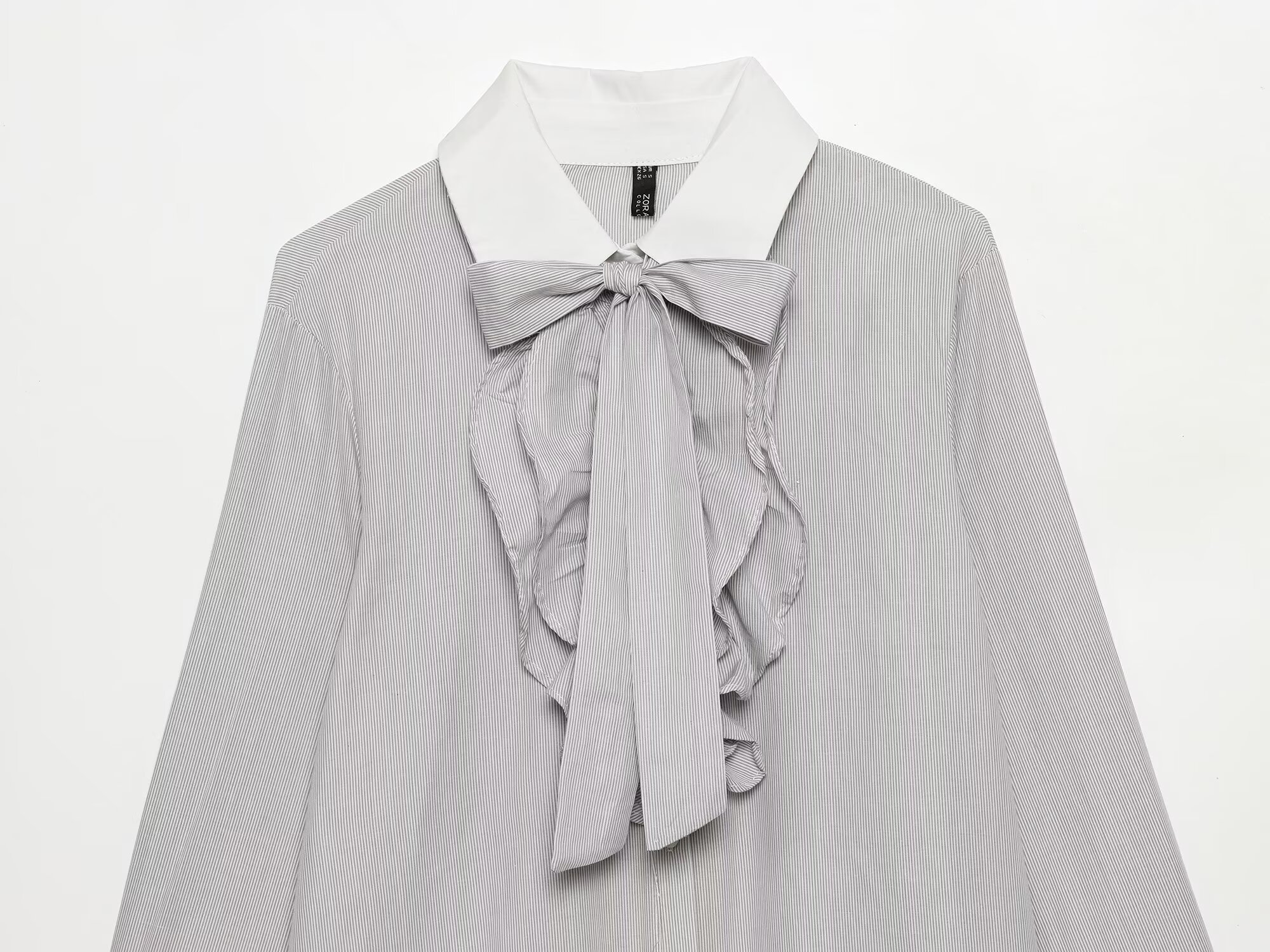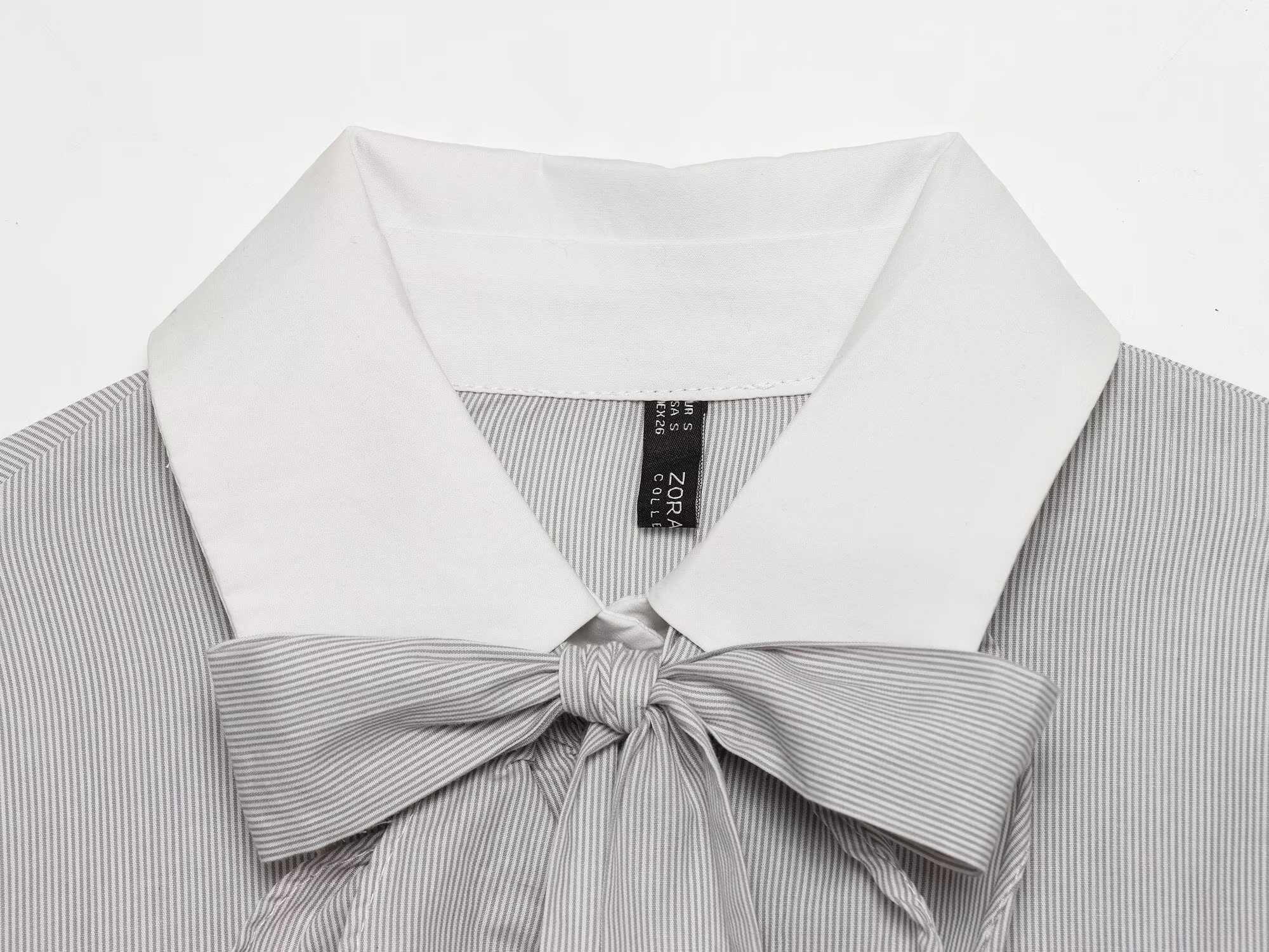 Women Clothing Western Bow Decoration Striped Stitching Shirt